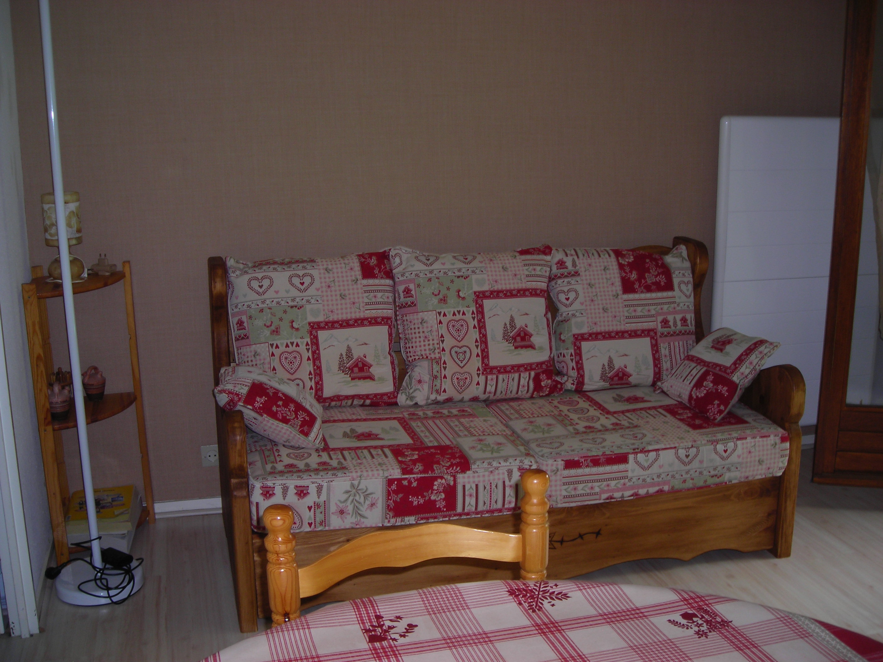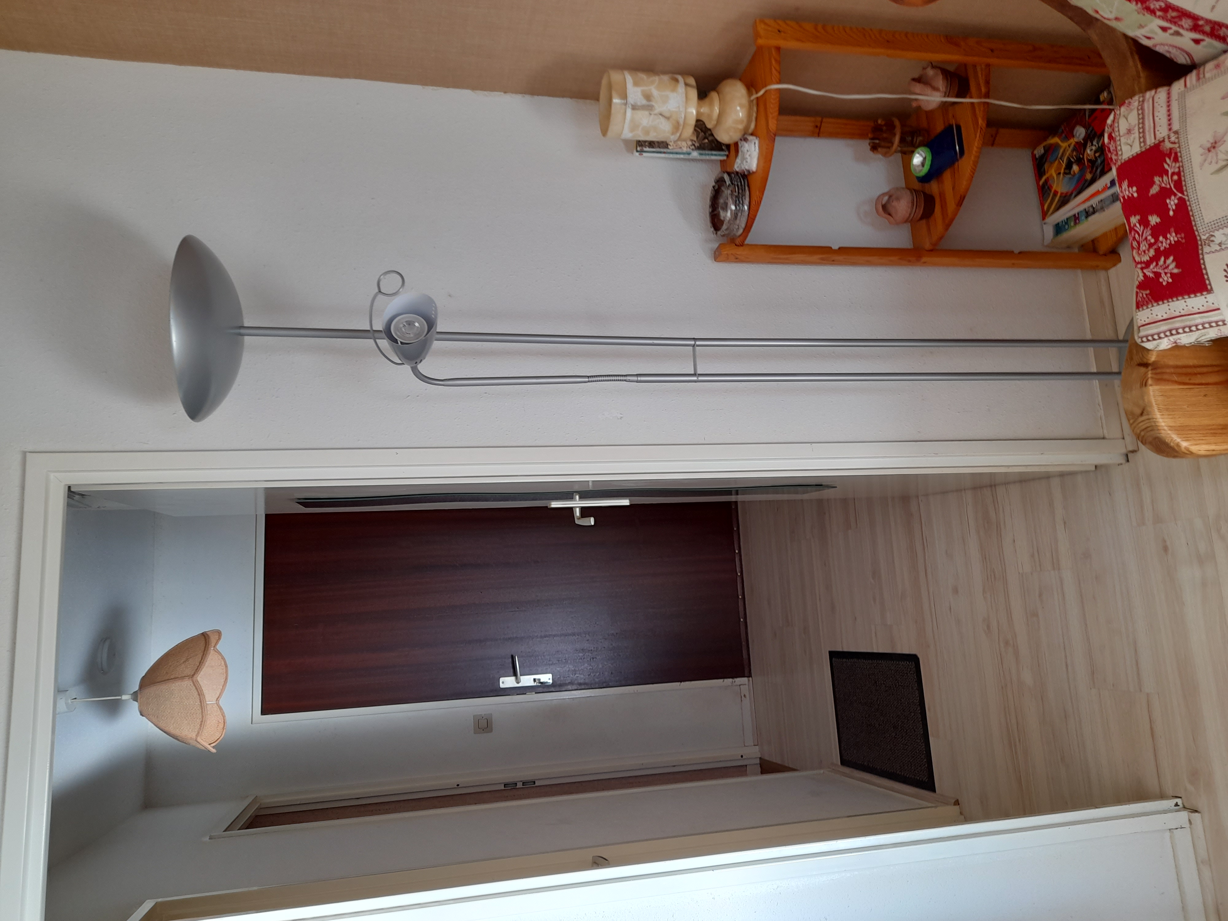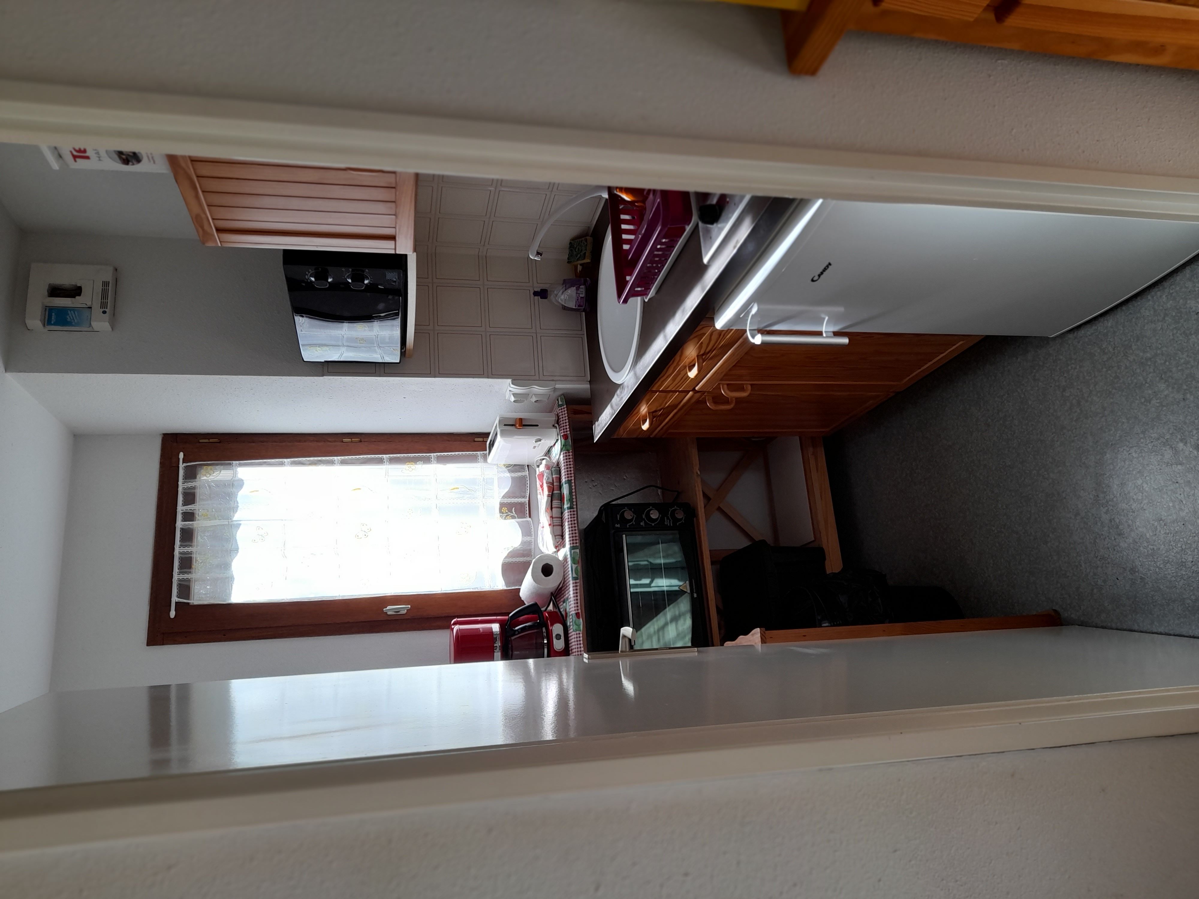 Appartement T2 de 34m2 situé au 1er étage d'une résidence sans ascenseur. Il est équipé d'une entrée, un salon avec un canapé lit en 130, un coin cuisine, une salle de bain avec WC. Une petite chambre et un balcon.