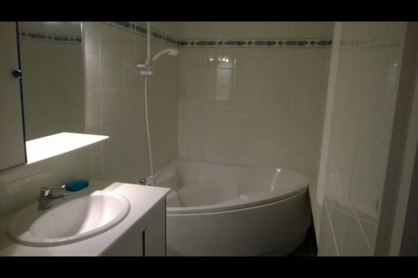 Coin cuisine attenant au séjour-salon avec espace repas et un canapé convertible en 140, chambre indépendante avec un lit en 140, salle de bain, WC indépendant.