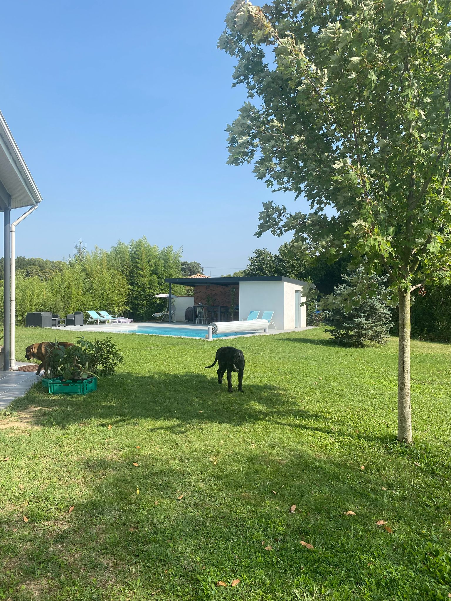Vous avez libre accès à la piscine. Nous pourrons vous prêter des jeux, des raquettes, ... Vous pourrez également profiter de notre mobilier de jardin