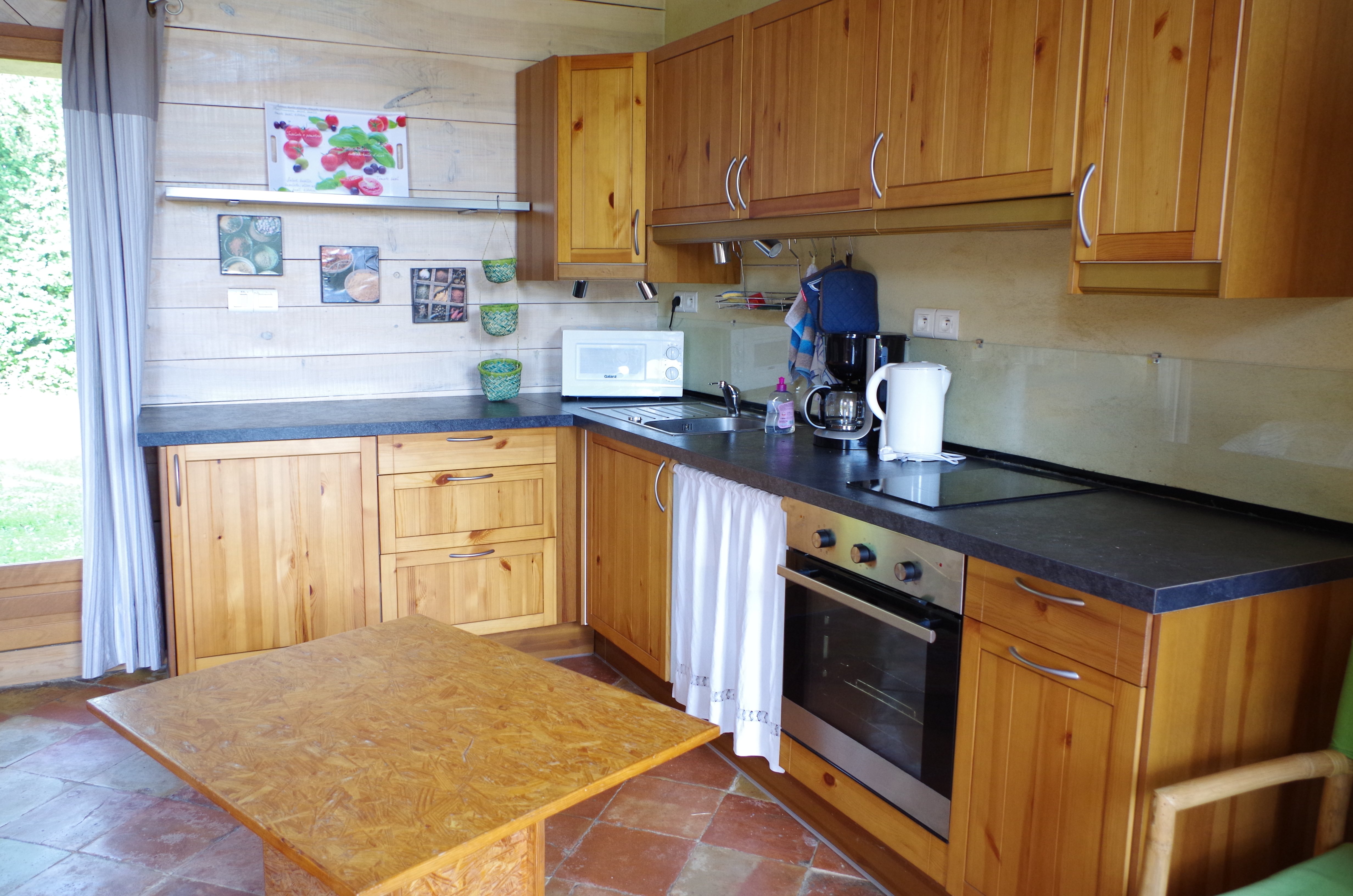 Le meublé se compose d'une vaste pièce de vie avec une cuisine équipée, un coin repas et un coin nuit (lit double).