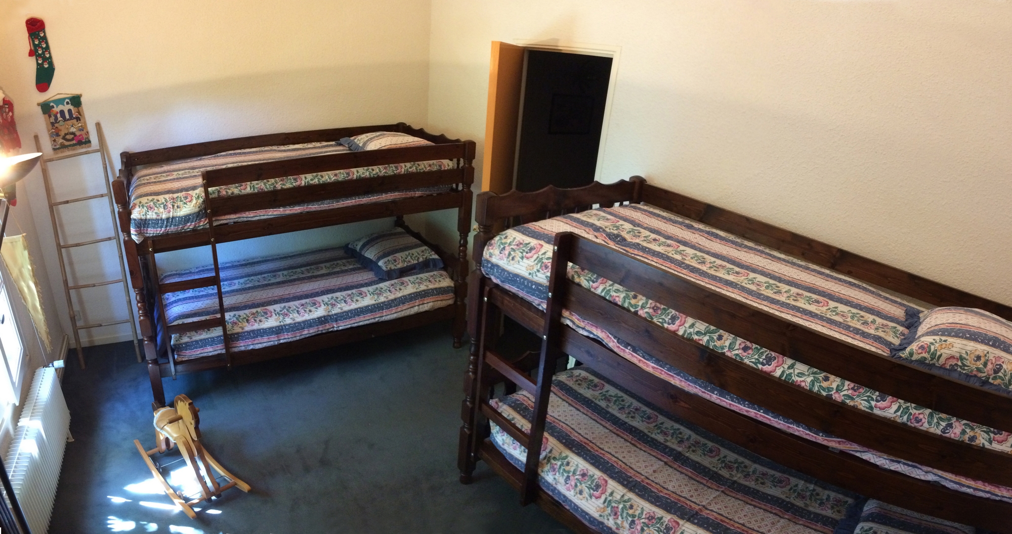 La chambre « Côté Pitchouns » (12 m2) dispose de quatre couchages individuels (90 x 190) organisés en lits superposés (2 x 2). Elle est aussi dotée d'une grande armoire ancienne. Elle vient essentiellement en complément de l’occupation d’au moins une des deux chambres doubles ; elle est principalement destinée à recevoir des enfants et des adolescents.