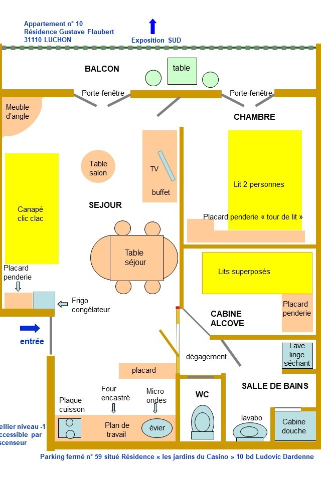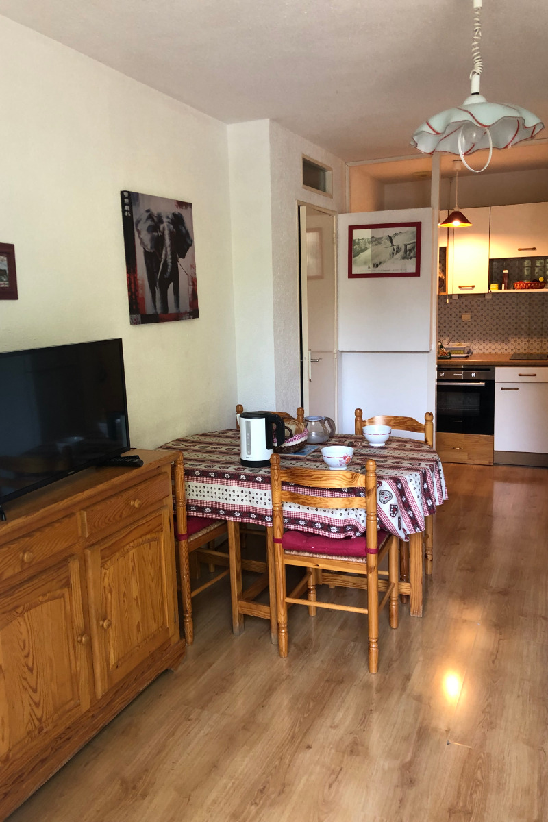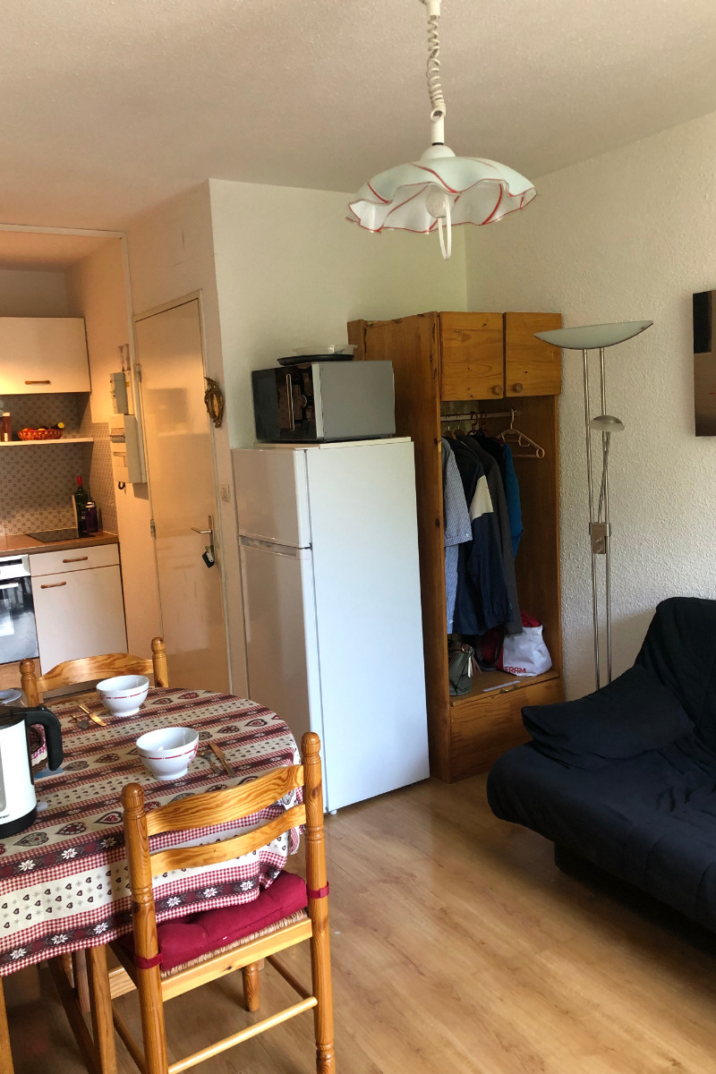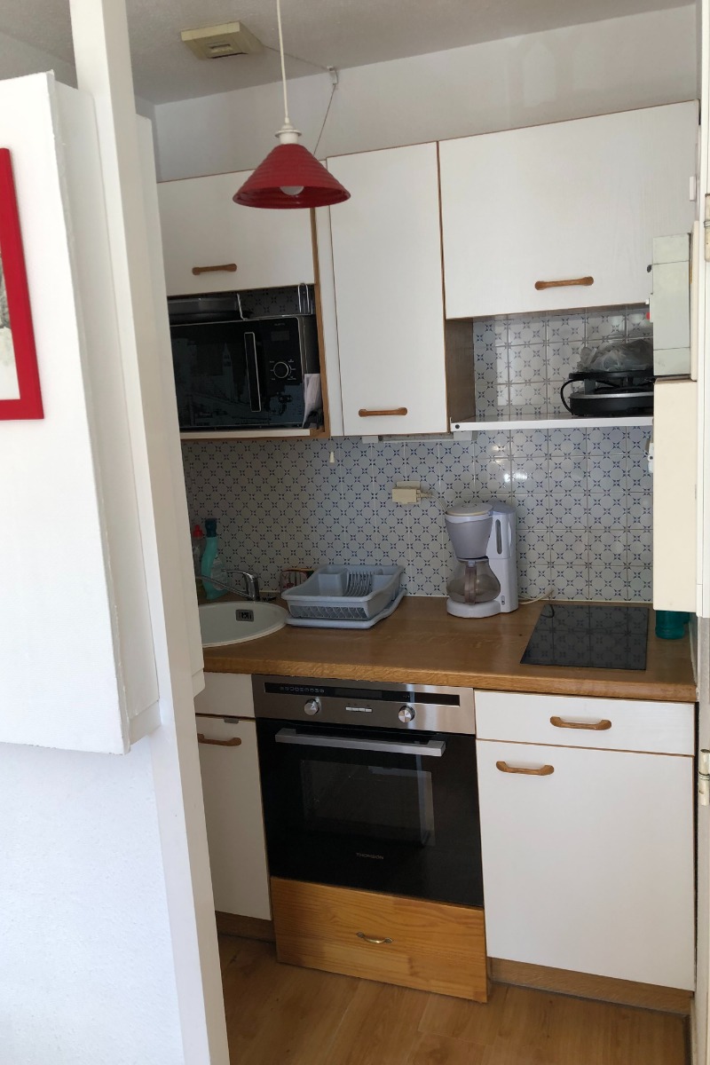 L'appartement se compose d'une kitchenette, séjour salon avec espace repas, chambre avec un lit en 140, alcôve avec deux lits en 80 superposés), salle d'eau, WC indépendant.